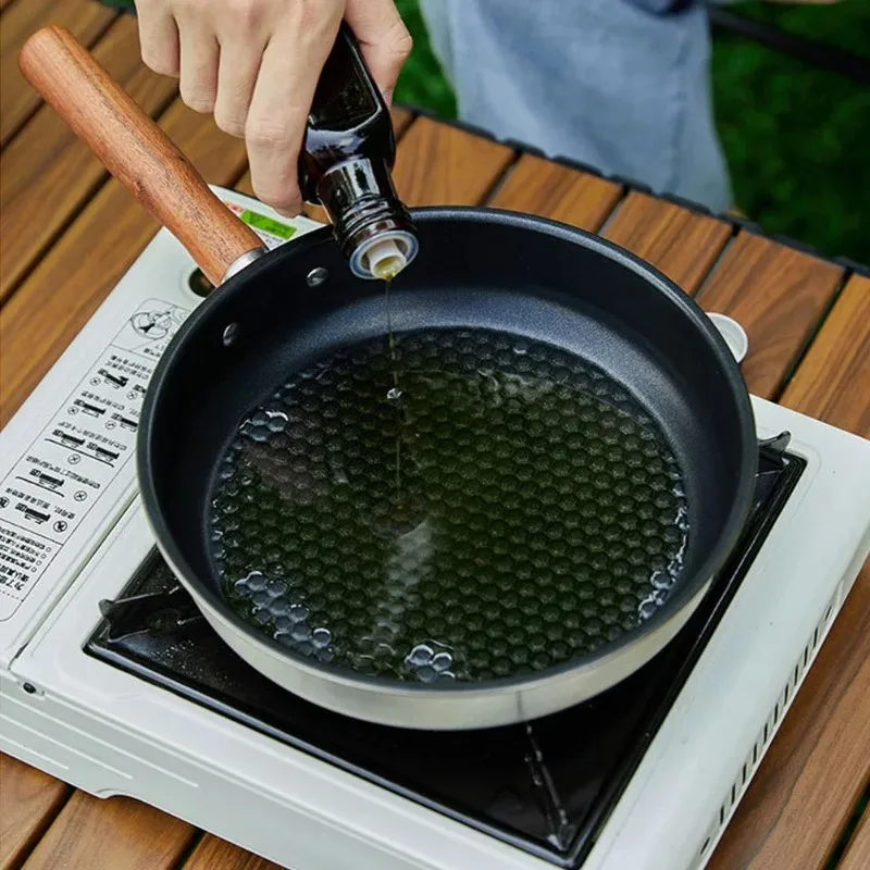 304 스테인레스 스틸 야외 캠핑 피크닉 플랫 바닥 붙지 않는 팬, 스테이크, 계란 프라이, 와플, 요리 필수품