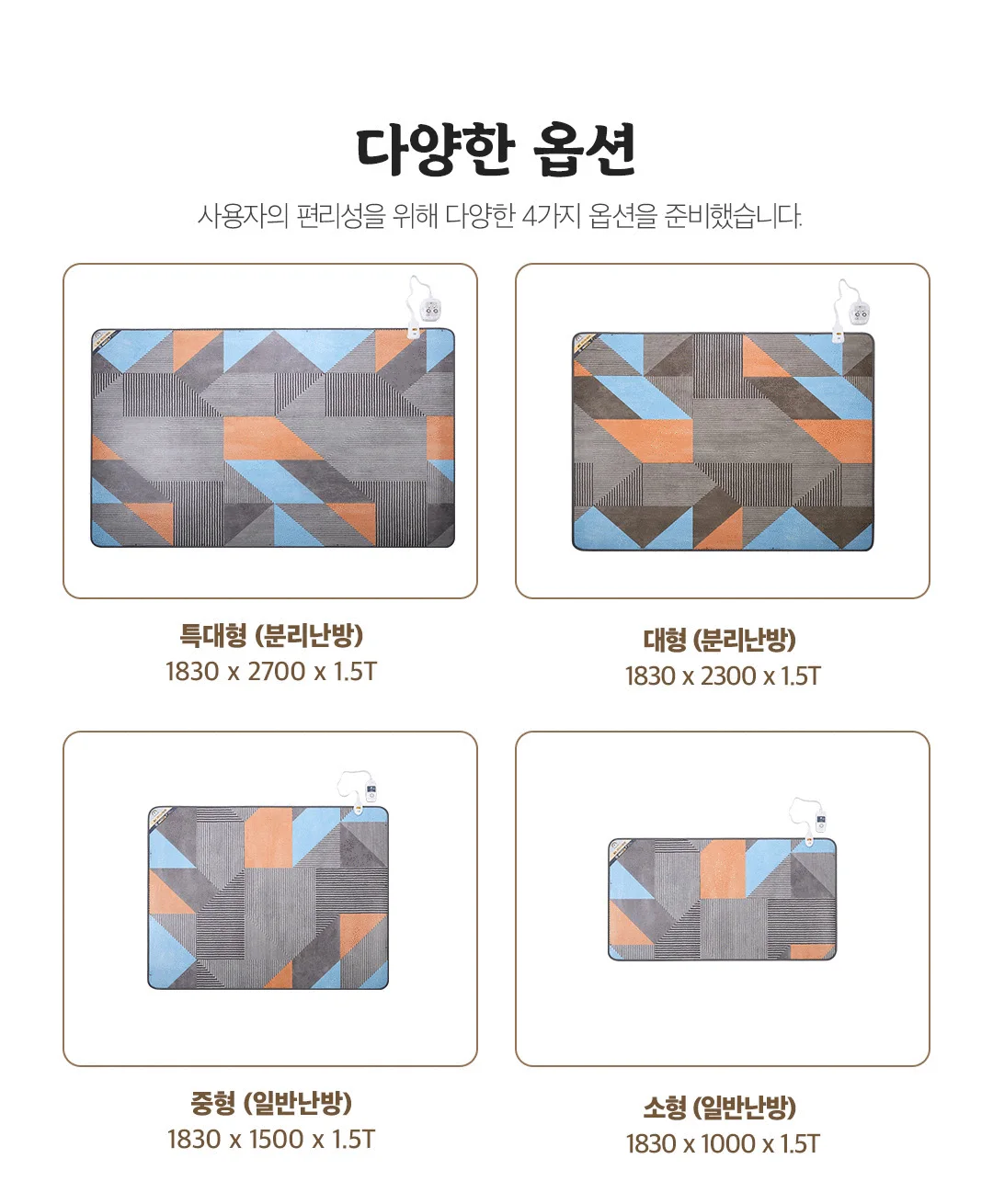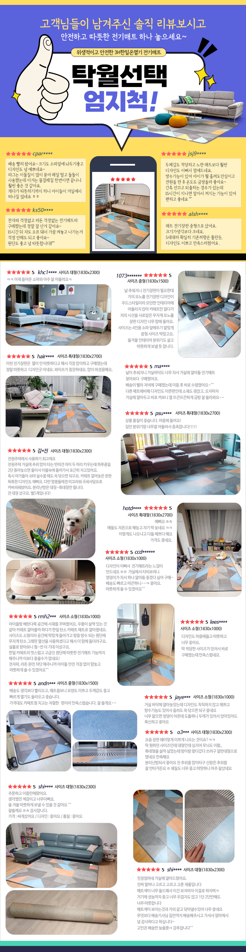 “3H한일온열기 거실용 전기카페트매트 EMF 전기장판 카본 탄소매트 중형_MO150”의 첫 상품평을 남겨주세요 응답 취소