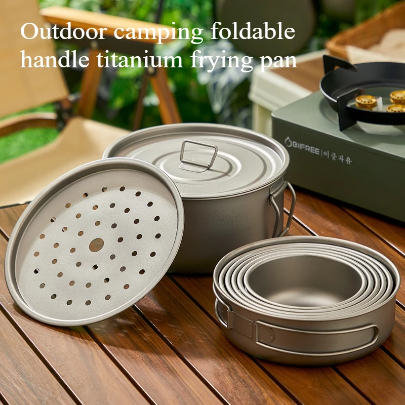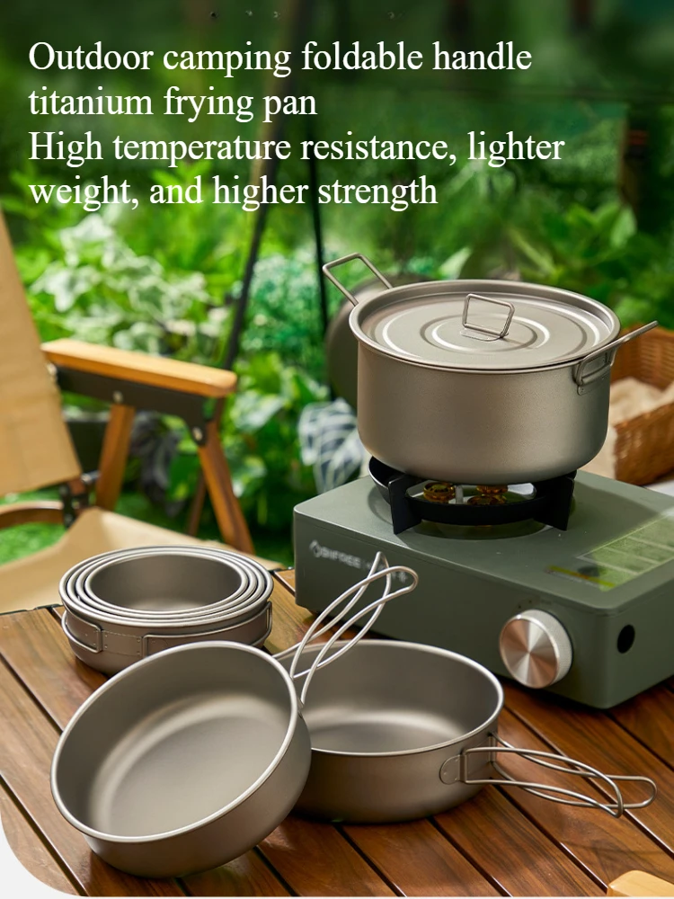 700ML/1200ML 티타늄 프라이팬 야외 캠핑 하이킹 피크닉 요리 프라이팬 배낭 프라이팬 야외 요리 팬 프라이팬