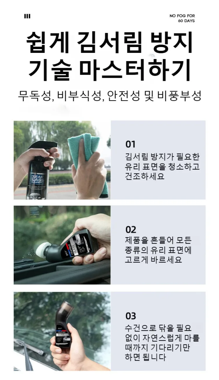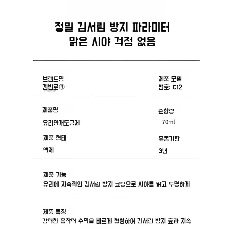 70ml 자동차 유리 김서림제거제 앞유리 코팅제 차예전용 반사경 김서림방지제 헬멧 차예공구 김서림제거제