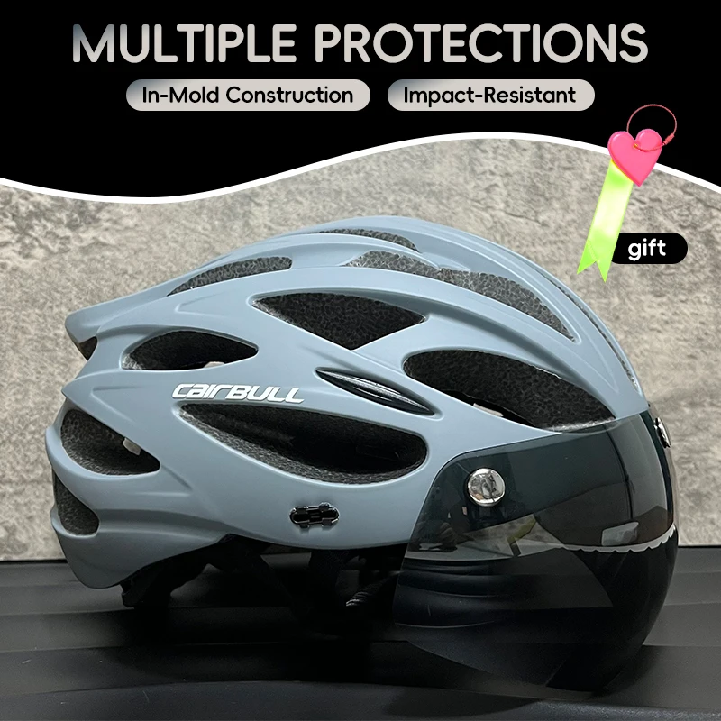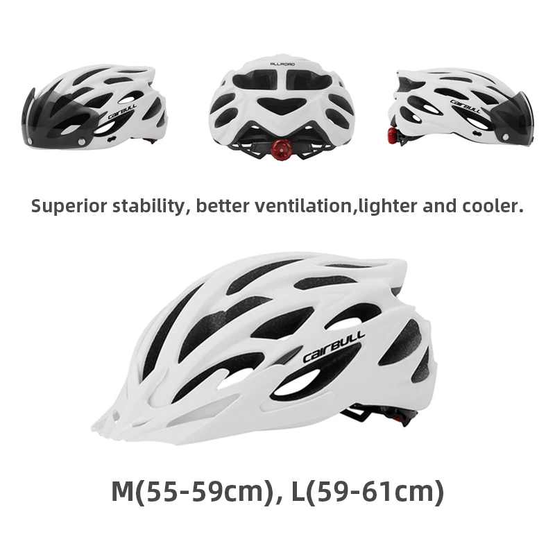 CAIRBULL 고글 자전거 헬멧 사이클링 Mtb 경량 일체형 헬멧 사이즈 L(후면 LED 라이트 포함) 스포츠용 하프 캡 55-61cm