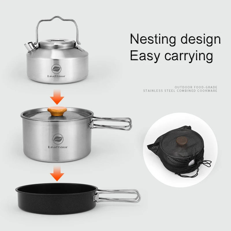 야외 캠핑 냄비 세트 304 스테인레스 스틸 그릇 피크닉 식기 휴대용 캠핑 요리 컵 여행 하이킹 장비 가방