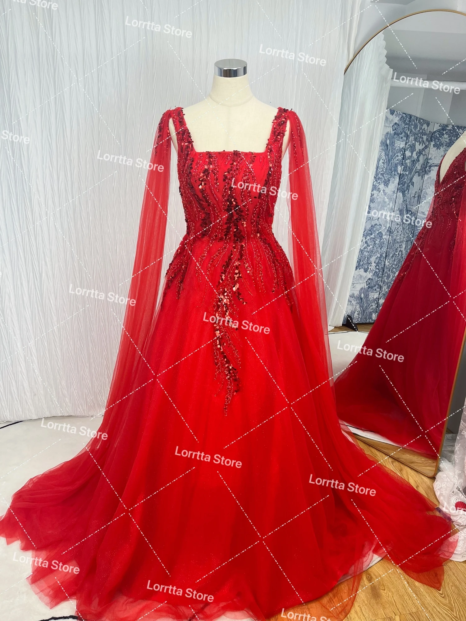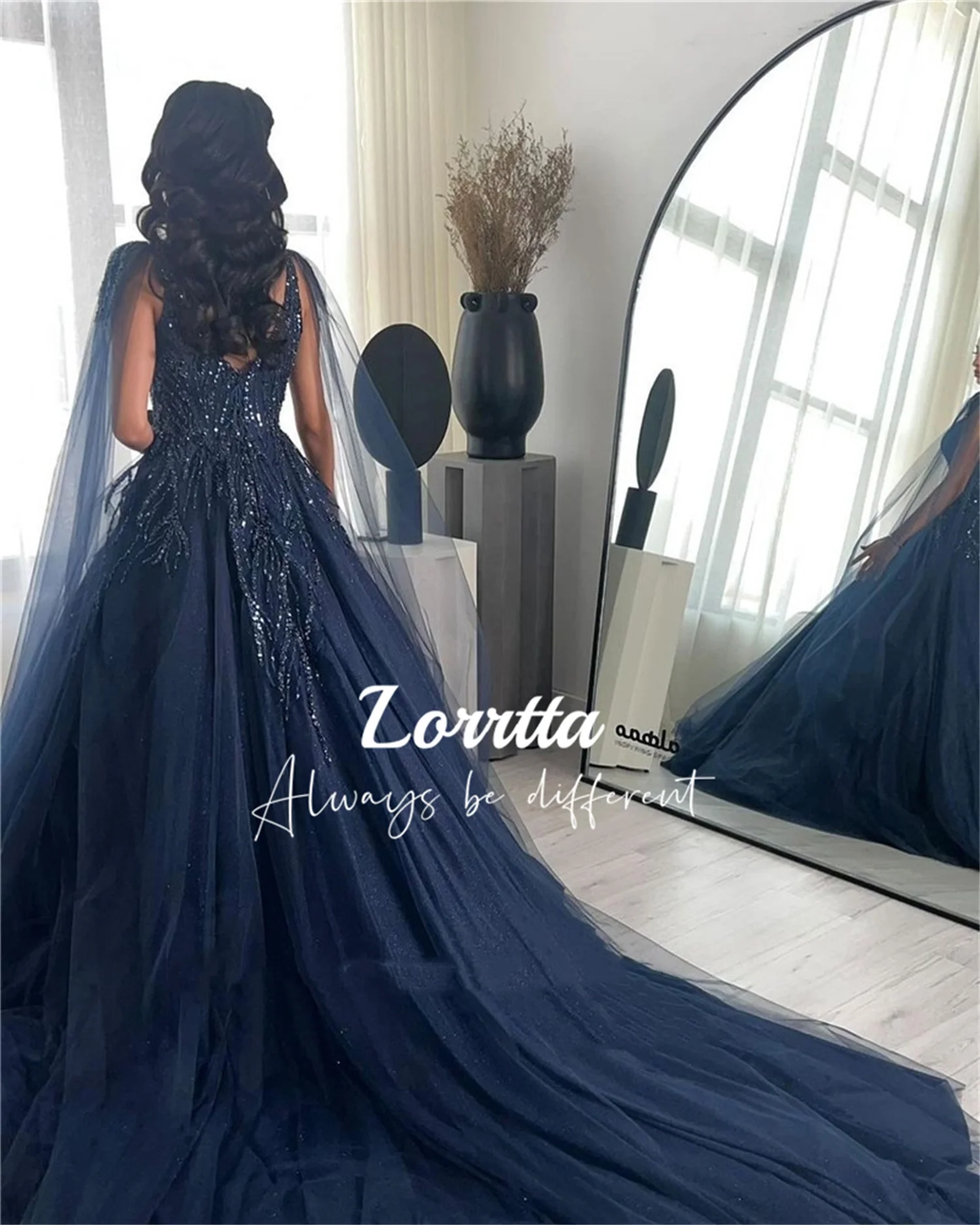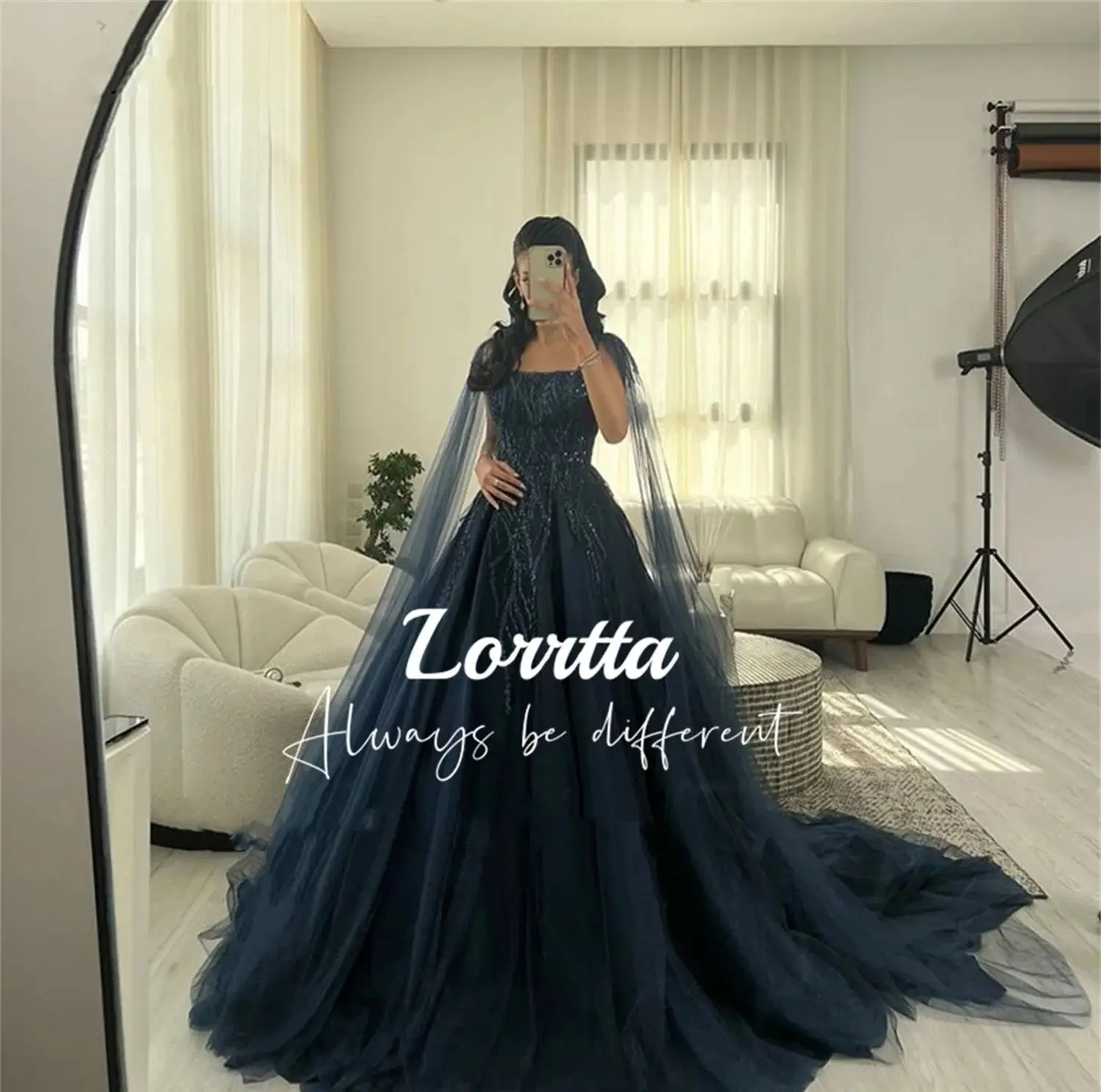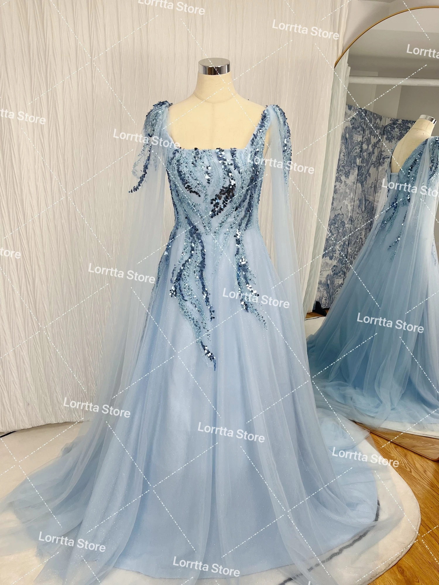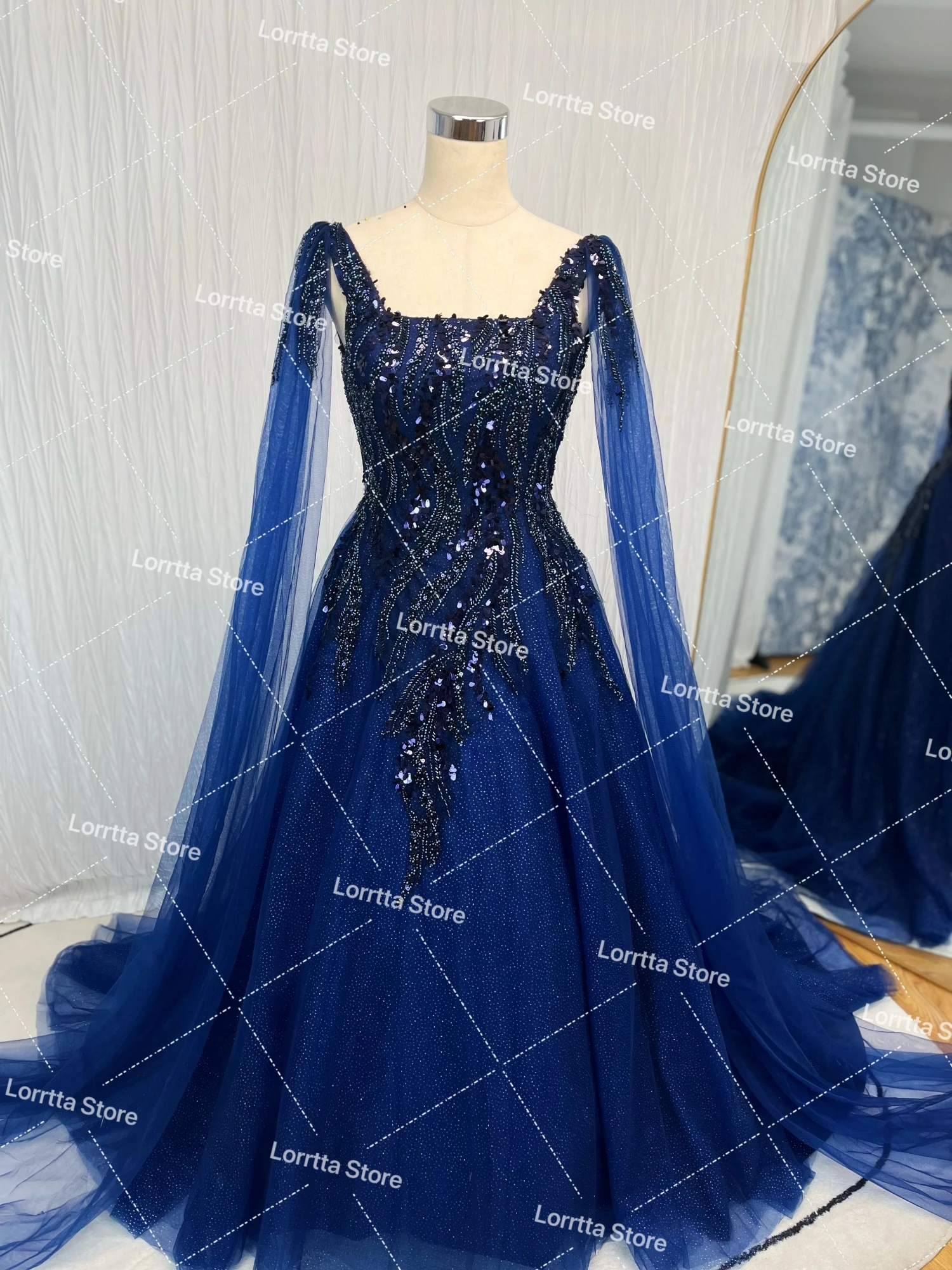 Lorrtta Tulle 두바이 아랍 여성 이브닝 드레스, 반짝이 레이스 얇은 명주 그물 무도회 가운, 반짝이는 정식 파티 행사, 맞춤형 원피스