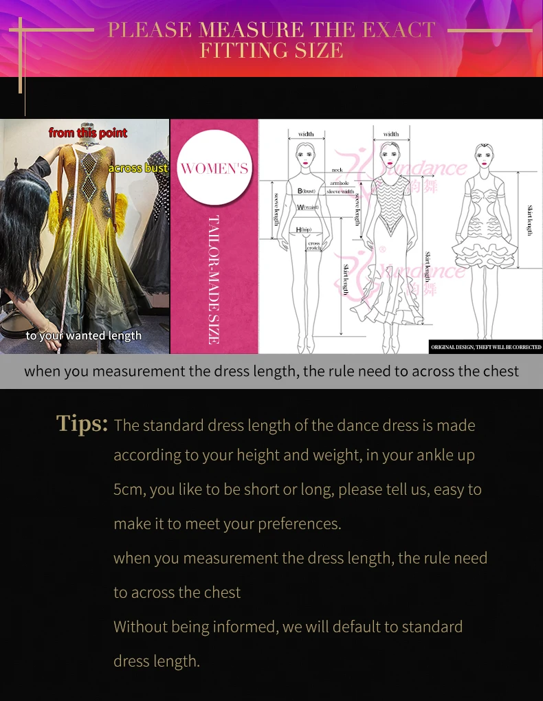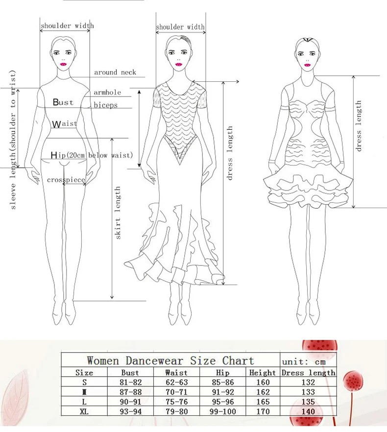 팁: 댄스 드레스의 표준 드레스 길이는 키와 몸무게에 따라 만들어지며 발목 위 5cm를 좋아합니다.