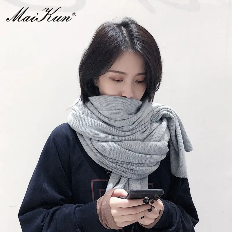 Maikun 여성을위한 두꺼운 따뜻한 스카프 순수한 색상 숙녀 모조 캐시미어 블랙 스카프 여성 겨울 Ahawl을 증가