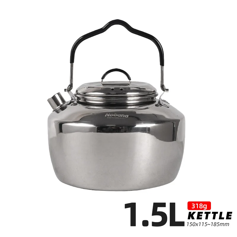 NOBANA & CLS 야외 캠핑 대용량 1.5L/1.3L 주전자 304 스테인레스 스틸 피크닉 휴대용 주전자 자체 운전 커피 포트