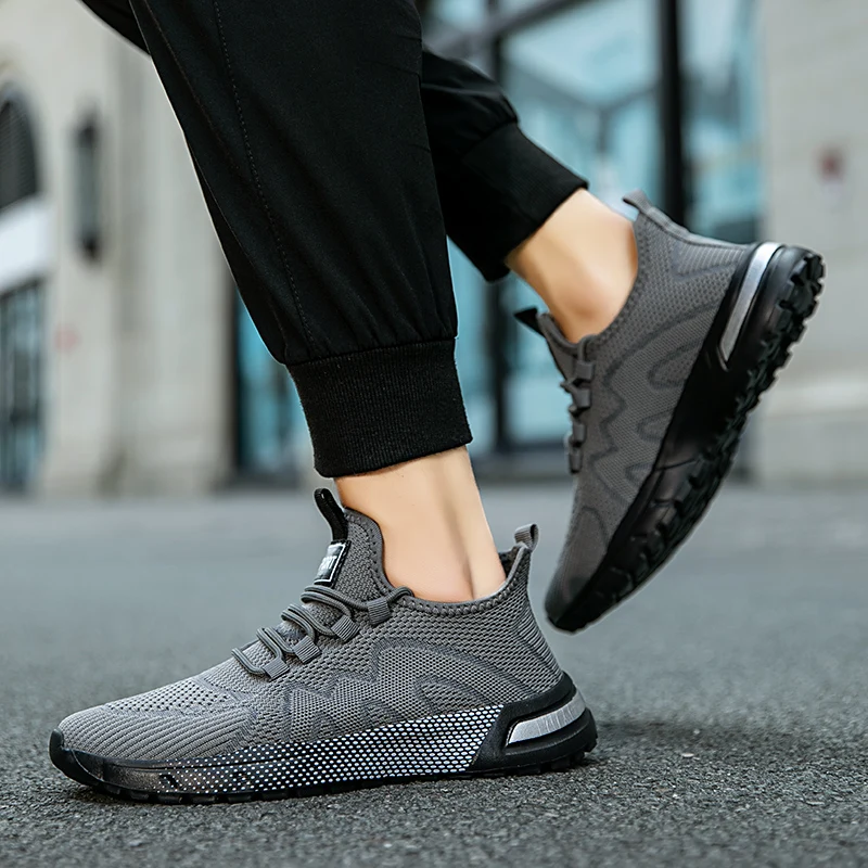 남성용 캐주얼 스포츠 신발, 통기성 경량 스니커즈, 야외 메쉬 블랙 러닝화, 운동 조깅 테니스 워킹화