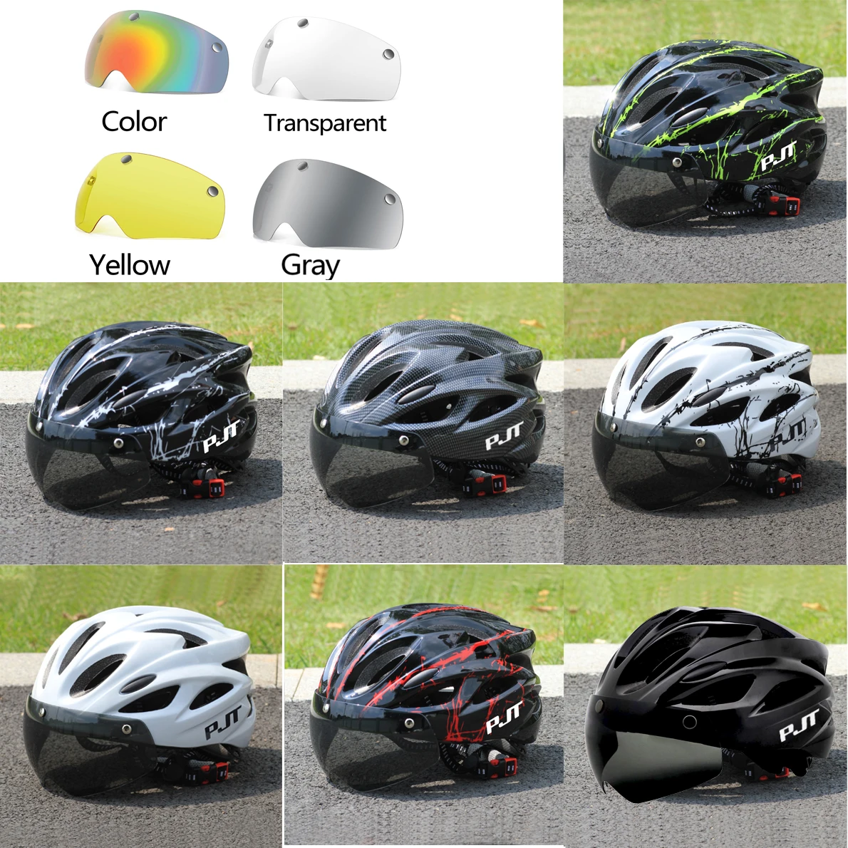 PJT 자기 매력 고글 렌즈가있는 경량 통기성 자전거 헬멧 자전거 헬멧 무료 스위칭 성인 사이클링 헬멧
